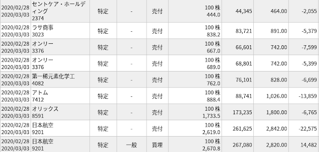 日本航空に空売りでヘッジしてみました。両建てというやつです。初めてやりましたが、やはり下げましたので、利確することが出来ました。